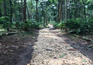 coconut tree with fruits on it. The trails are not suitable for strollers. Pls use